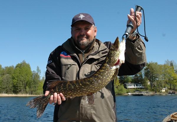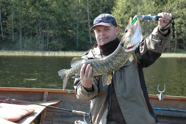 A cuccok kipakolása után indultunk is ki a vízre, mert hajtott minket horgászvér, hogy mihamarabb felfedezzük ezt a gyönyörű vizet. Tulajdonképpen a Dalslandi tóvidéken nem egy tó van, hanem nagyon sok. Mi is egyből szembesültünk, hogy a következő napok horgászterülete, nem is egy, hanem mindjárt két hatalmas tó. Miután vízre szálltunk és célba vettük az első szimpatikusnak tűnő nádast, Zoliék egyből akasztottak is egy másfél körüli csukát. Egy kis tanácskozás után azonban úgy döntöttünk, menjünk át a másik tóra is.