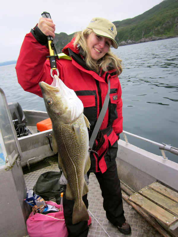 Az 5-ös csónak (vagyis mi) legénysége nem büszkélkedhetett 20 kg feletti fogásokkal, ellenben nagyon jól éreztük magunkat, ahogy bejártuk a környék legszebb fjordjait, napról napra szebbnél szebb helyeken horgásztunk. Gyönyörű fogások persze nekünk is jutottak: 8-10 kg-os tőkehalak jöttek Viki és Árpi pilkjeire, mi Attilával megelégedtünk a 6-7 kg közötti példányokkal.